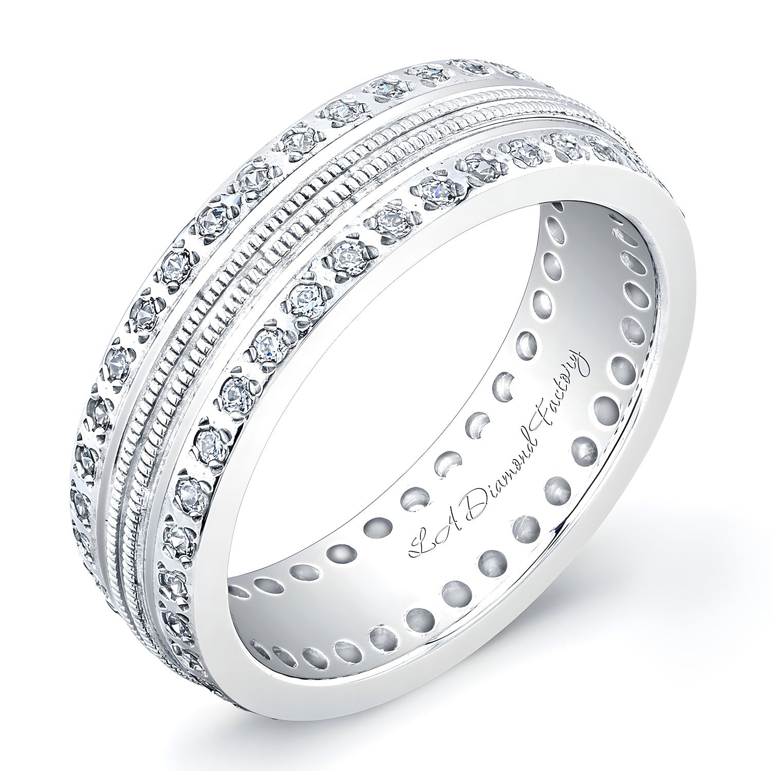 8mm double eternity men's diamond wedding band with mil-grained center. With approximately 70 diamonds.