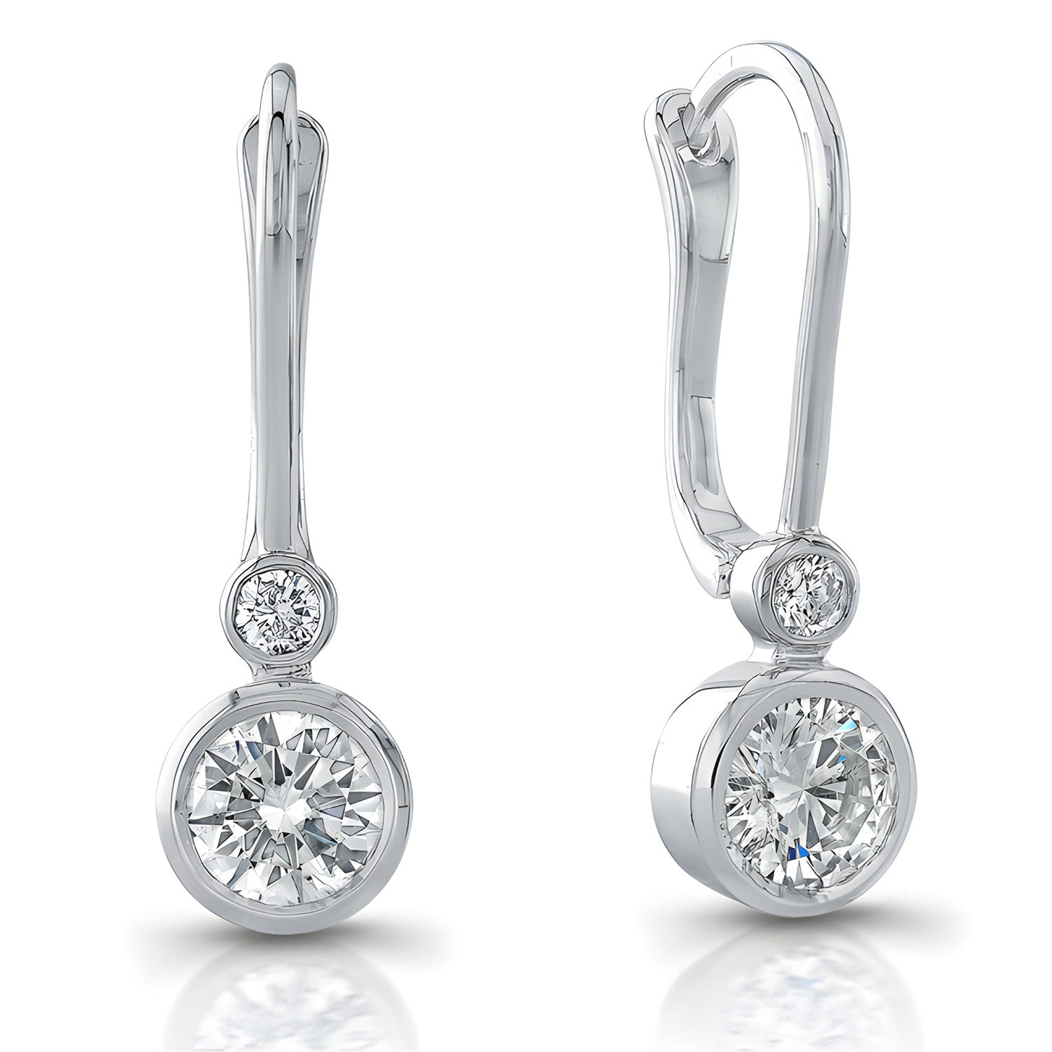 Diamond drop earrings with four round brilliant cut diamonds. The total weight of this handmade pair of earrings is approximately 3/4ctw. Each pair is handmade in Los Angeles.