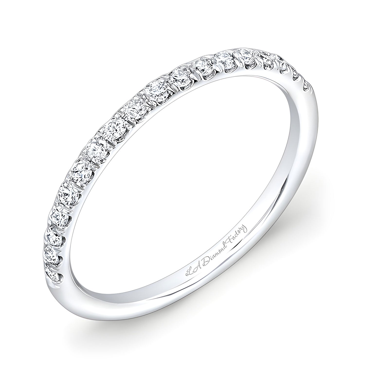 Micro-pave ladies diamond wedding band. Features micro-pave set diamonds going half way around. Each diamond is handset in Los Angeles.