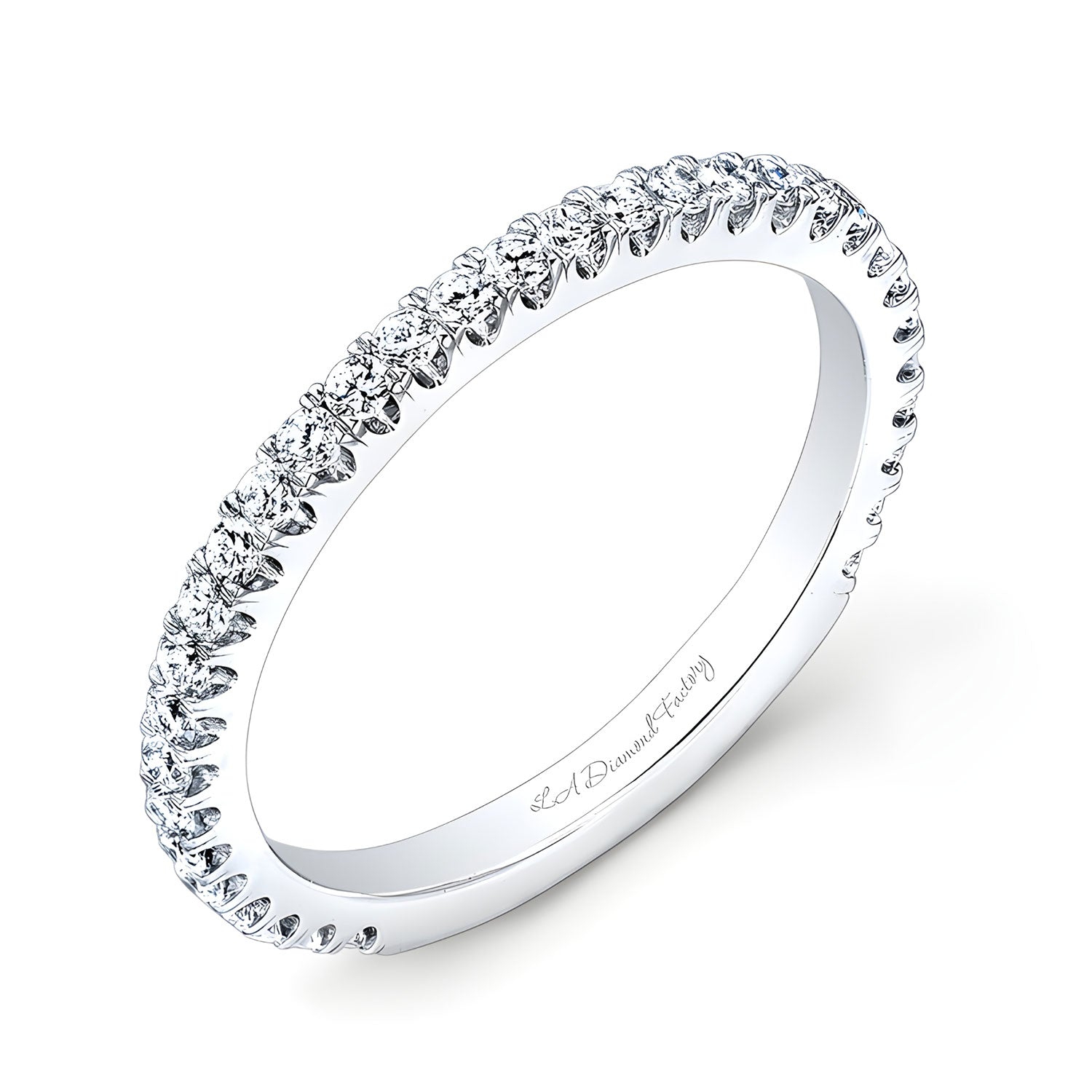 Scalloped pave diamond wedding band with diamonds either 1/2 or 3/4 of the way around. Each diamond is handset in Los Angeles. Approximately 1.6mm in width