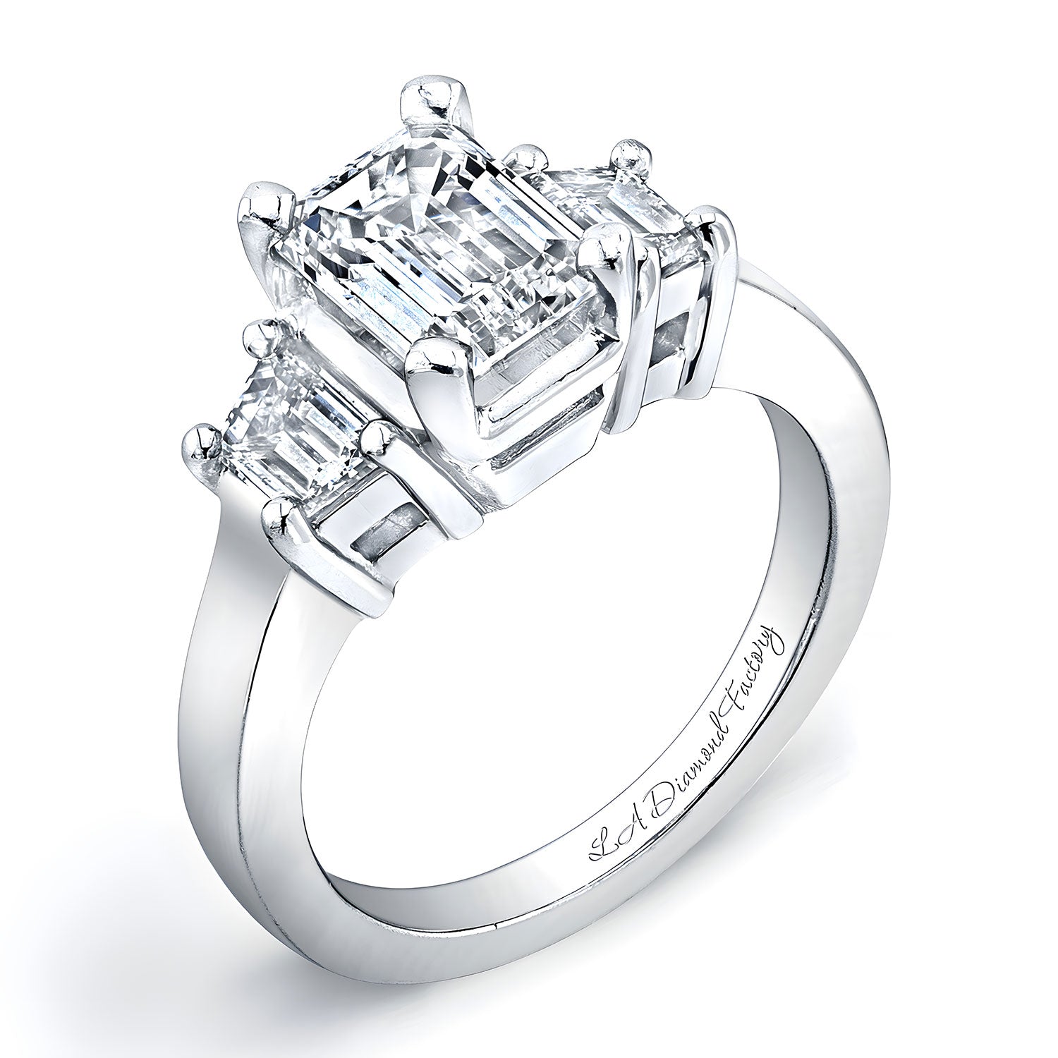 One of the most classic styles in history. This ring features an emerald cut diamond center flanked on each side by a baguette cut diamond. This style setting can be custom made to adjust the side stone size and center diamond shape. Price does not include center stone