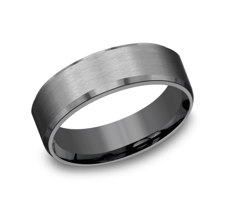 This incredible 7mm comfort-fit and satin finished darkened Tantalum band features a slight beveled edge.